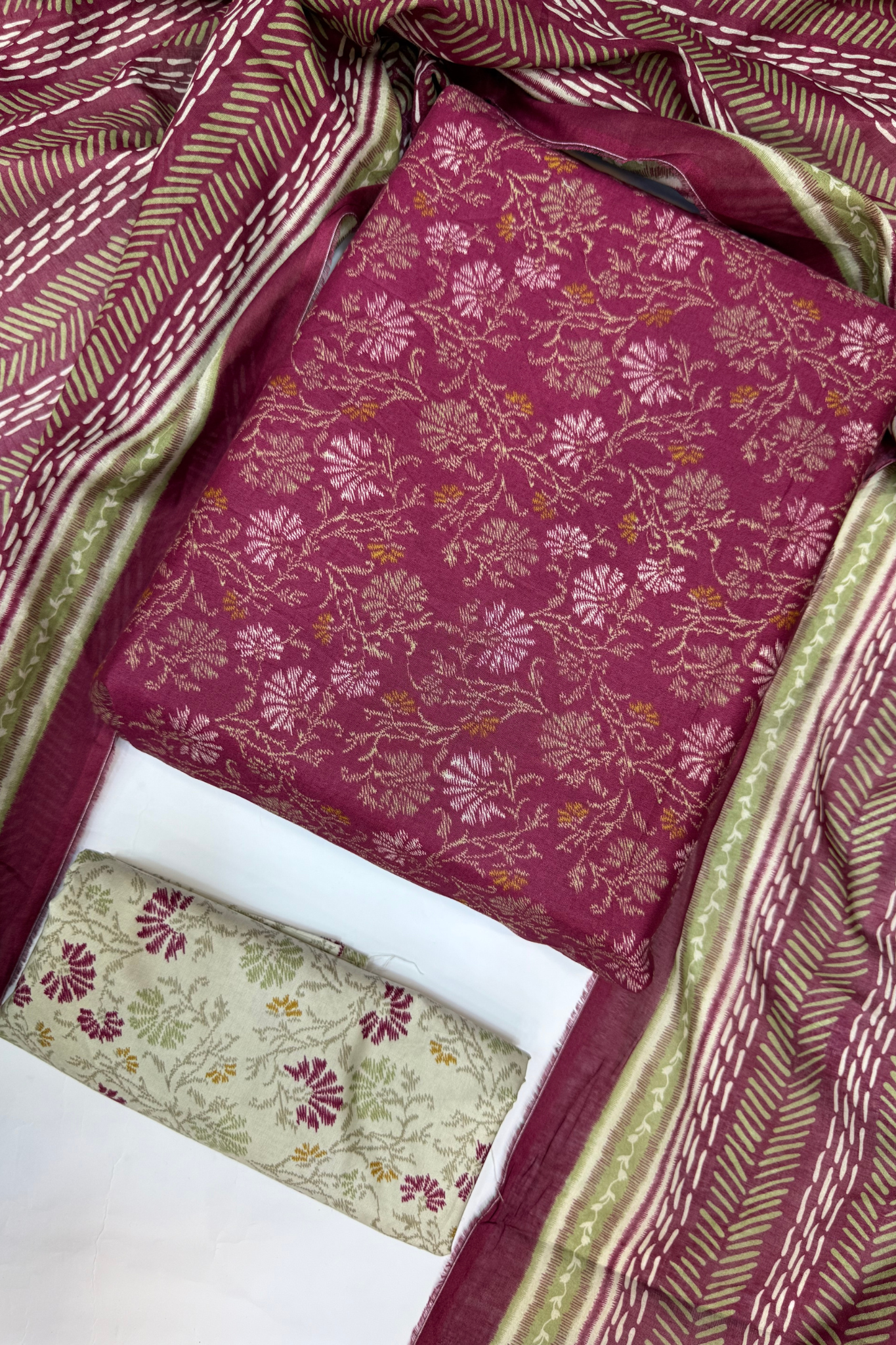 β Unstitched Shirt, Trouser & Dupatta Β