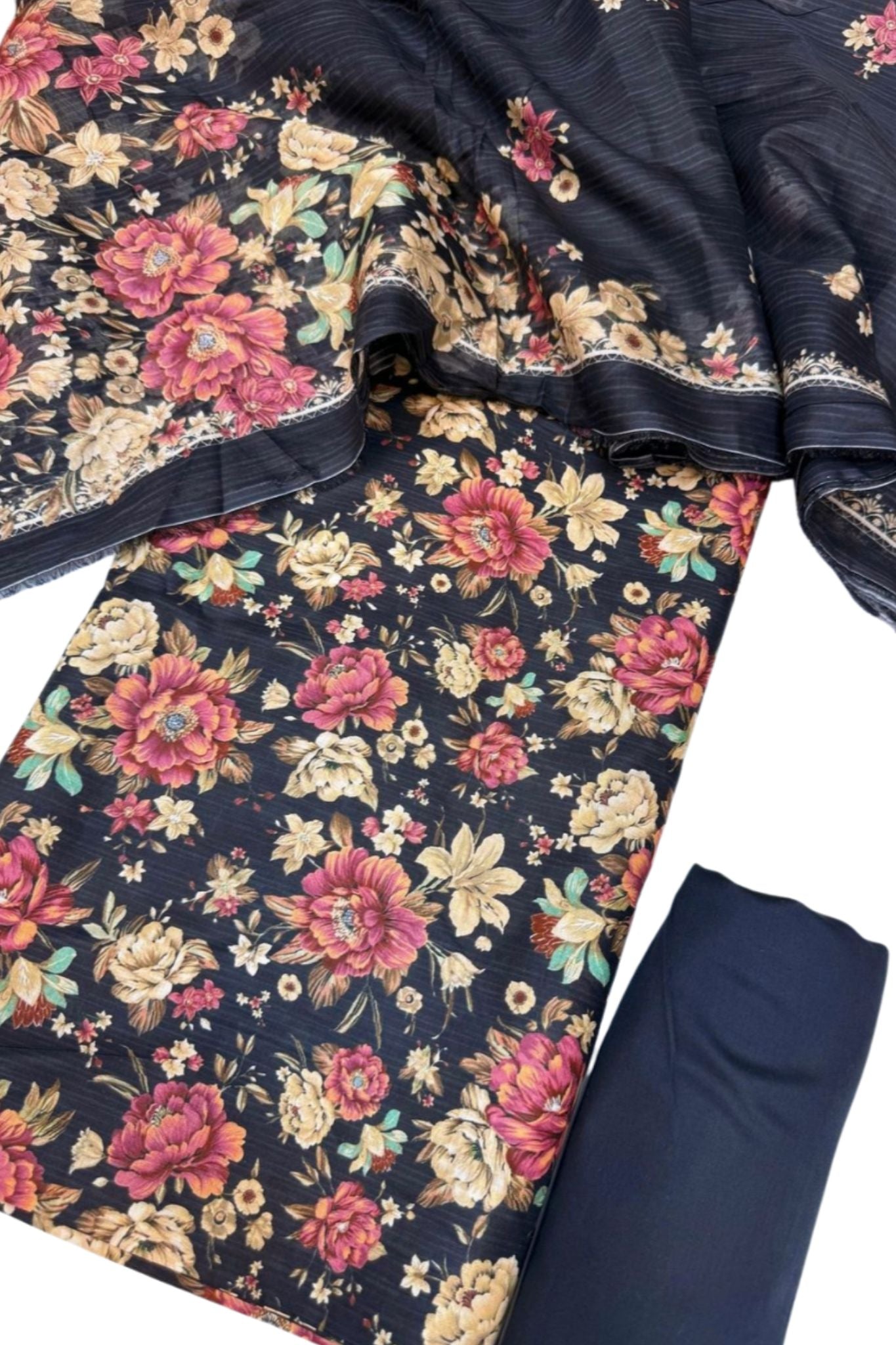 β Unstitched Shirt, Trouser & Dupatta Β
