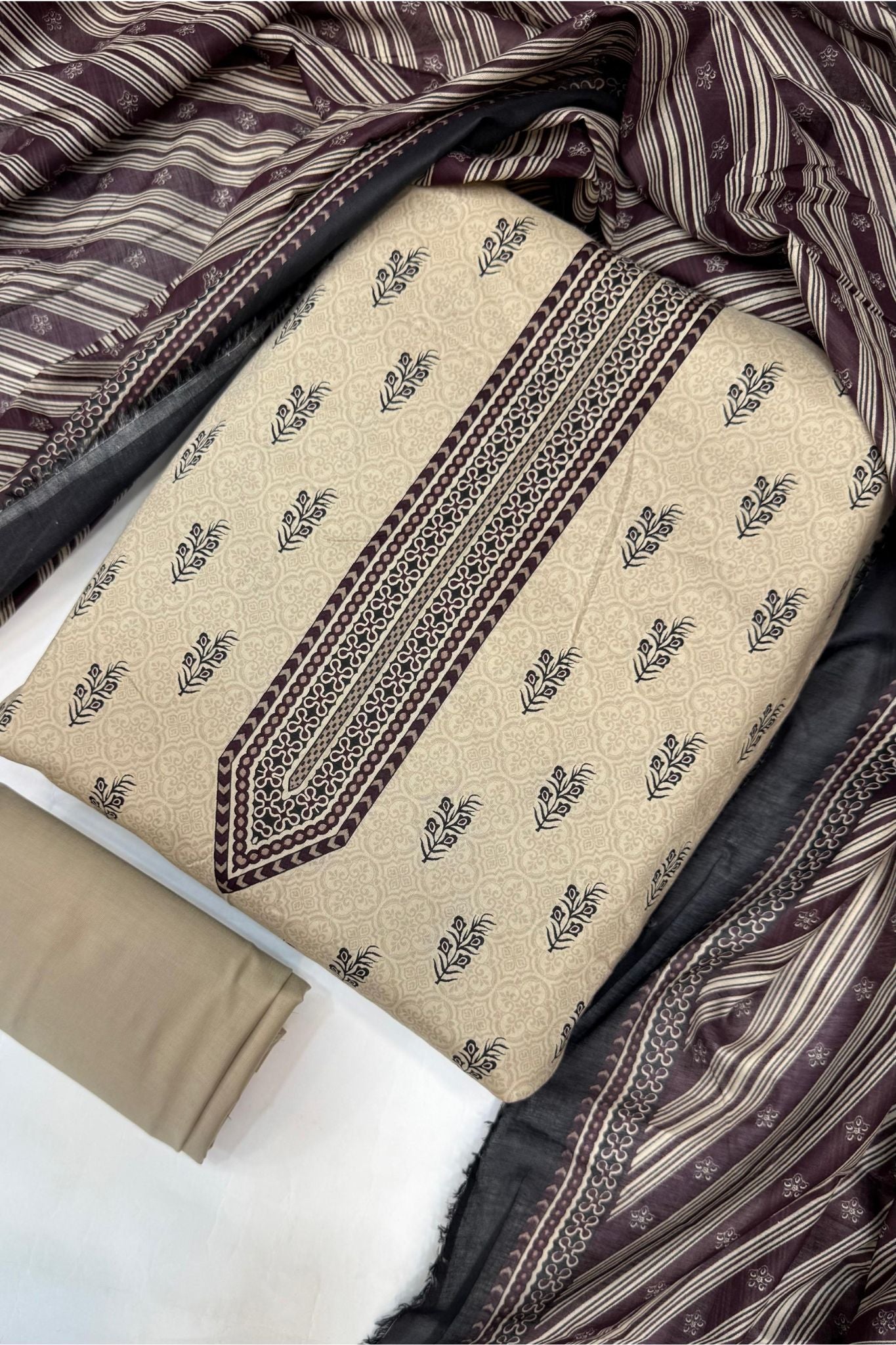 β Unstitched Shirt, Trouser & Dupatta Β