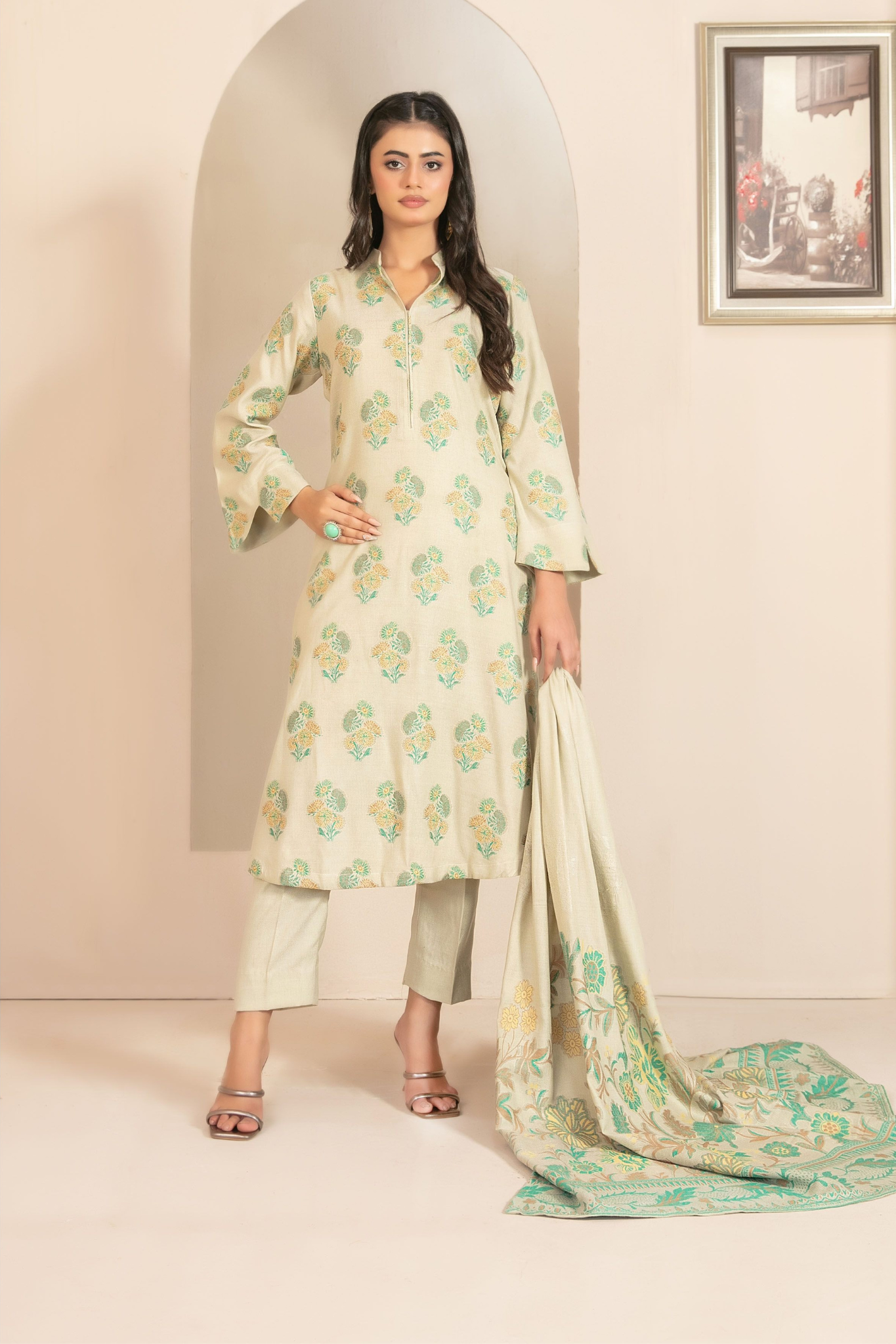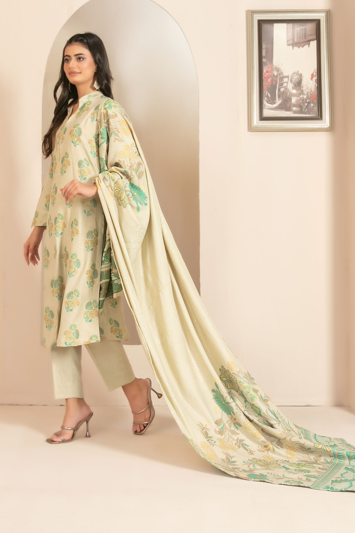 3 Piece Un-Stitched Collection By Tawakkal Fabrics, Attractive & Elegant Broshia Boti Leather Peach Collection comes with: