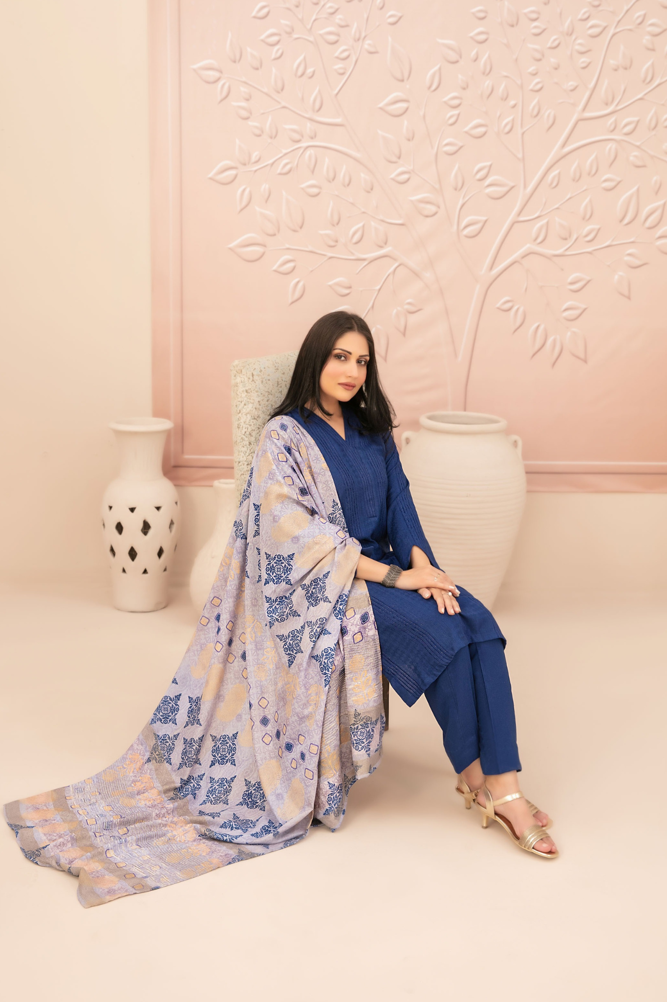 3 Piece Un-Stitched Collection By Tawakkal Fabrics, Attractive & Elegant Fancy Leather Peach Collection comes with: