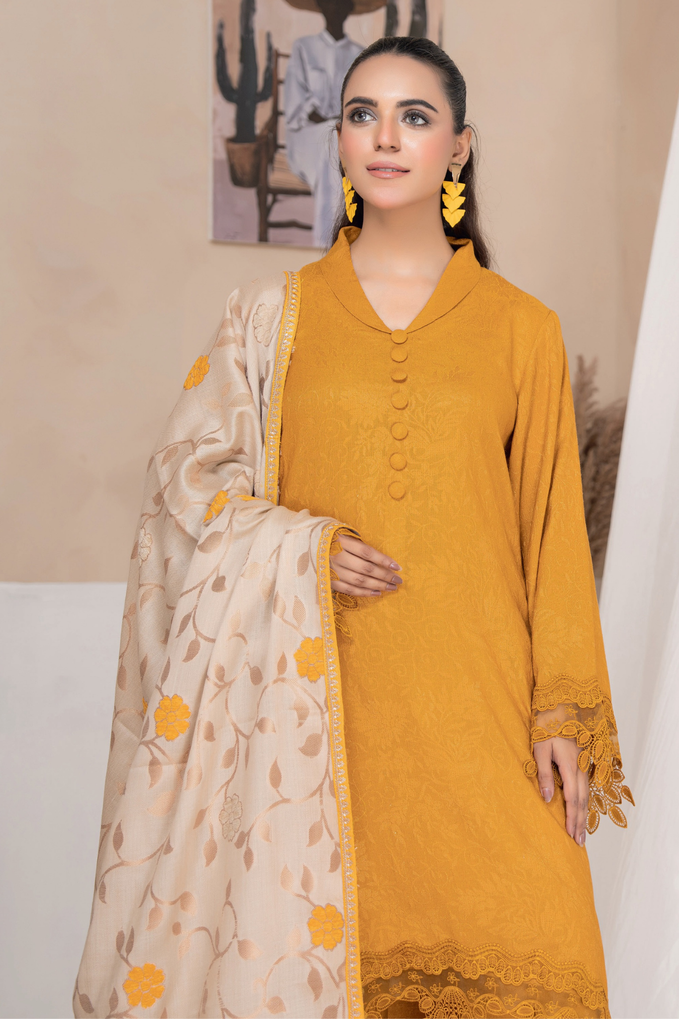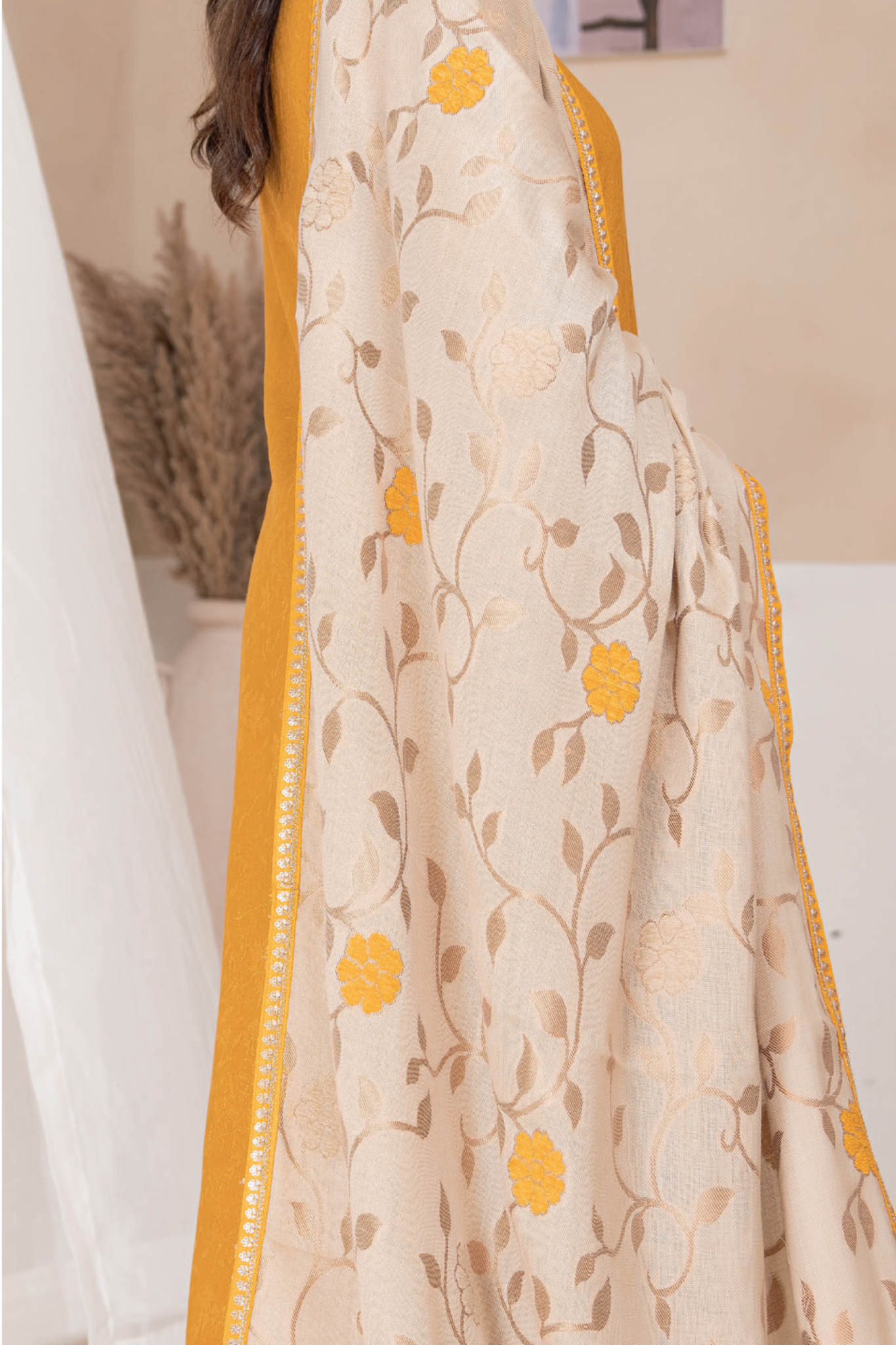 Self Jacquard Peach Shirt Zari Peach Trouser With Dyed Yarn Jamawar Wool Shawl